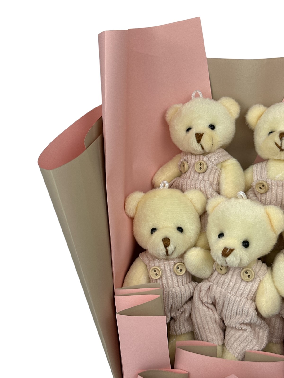 PUDRA PEMBE TEMALI TULUMLU SEVİMLİ AYICIK BUKETİ