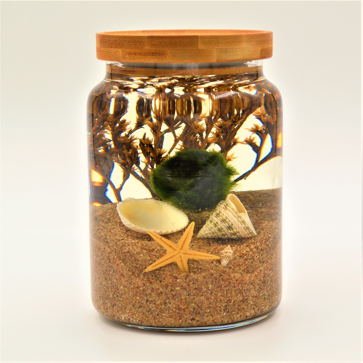 Suyun doğal hareketleriyle top şeklini alan yeşil alglerin oluşturduğu Marimo, fotosentez yaparak kendi besinini üretebilen ve su içinde yaşayan bir canlı türü olarak sınıflandırılıyor. Japonya’nın Akan, İzlanda’nın Myvatn göllerinde koloniler halinde yaşayan Marimo, oldukça az rastlanan canlı türleri arasında.1921 yılında Japonya’da, 2006 yılında ise İzlanda’da ‘’ulusal hazine’’ ilan edilerek koruma altına alınan bu canlıların,avuç içinde sıkıca tutunca dilekleri gerçekleştirdiğine inanılıyor.Ayrıca sahibine şans, mutluluk, huzur ve bereket getirdiğine de inanılıyor.Yılda ortalama 5 mm büyüyor.Bakımı suyunu değiştirmek kadar kolay.Boyut: 16X10 cm Ürün bakım bilgileri siparişinizle birlikte gönderilecektir.