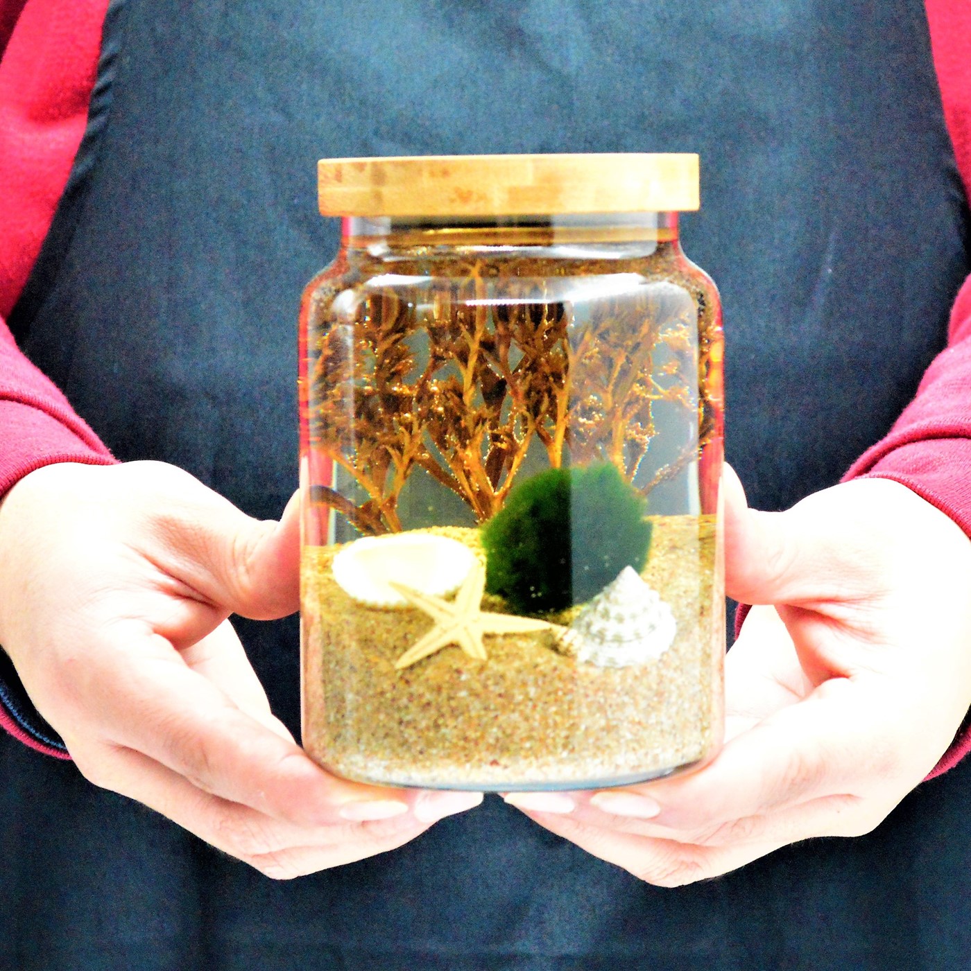 Suyun doğal hareketleriyle top şeklini alan yeşil alglerin oluşturduğu Marimo, fotosentez yaparak kendi besinini üretebilen ve su içinde yaşayan bir canlı türü olarak sınıflandırılıyor. Japonya’nın Akan, İzlanda’nın Myvatn göllerinde koloniler halinde yaşayan Marimo, oldukça az rastlanan canlı türleri arasında.1921 yılında Japonya’da, 2006 yılında ise İzlanda’da ‘’ulusal hazine’’ ilan edilerek koruma altına alınan bu canlıların,avuç içinde sıkıca tutunca dilekleri gerçekleştirdiğine inanılıyor.Ayrıca sahibine şans, mutluluk, huzur ve bereket getirdiğine de inanılıyor.Yılda ortalama 5 mm büyüyor.Bakımı suyunu değiştirmek kadar kolay.Boyut: 16X10cm Ürün bakım bilgileri siparişinizle birlikte gönderilecektir.
