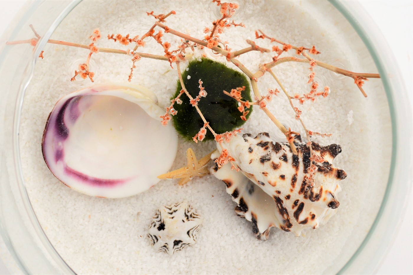 Suyun doğal hareketleriyle top şeklini alan yeşil alglerin oluşturduğu Marimo, fotosentez yaparak kendi besinini üretebilen ve su içinde yaşayan bir canlı türü olarak sınıflandırılıyor. Japonya’nın Akan, İzlanda’nın Myvatn göllerinde koloniler halinde yaşayan Marimo, oldukça az rastlanan canlı türleri arasında.1921 yılında Japonya’da, 2006 yılında ise İzlanda’da ‘’ulusal hazine’’ ilan edilerek koruma altına alınan bu canlıların,avuç içinde sıkıca tutunca dilekleri gerçekleştirdiğine inanılıyor.Ayrıca sahibine şans, mutluluk, huzur ve bereket getirdiğine de inanılıyor.Yılda ortalama 5 mm büyüyor.Bakımı suyunu değiştirmek kadar kolay.Boyut: 22X22cm Ürün bakım bilgileri siparişinizle birlikte gönderilecektir.