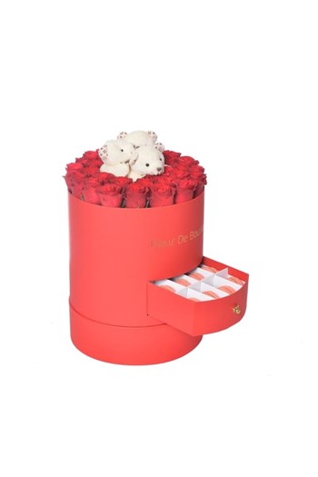 SENİ SEVİYORUM SİLİNDİR KUTUDA GÜLLER VE KALP ÇİKOLATA