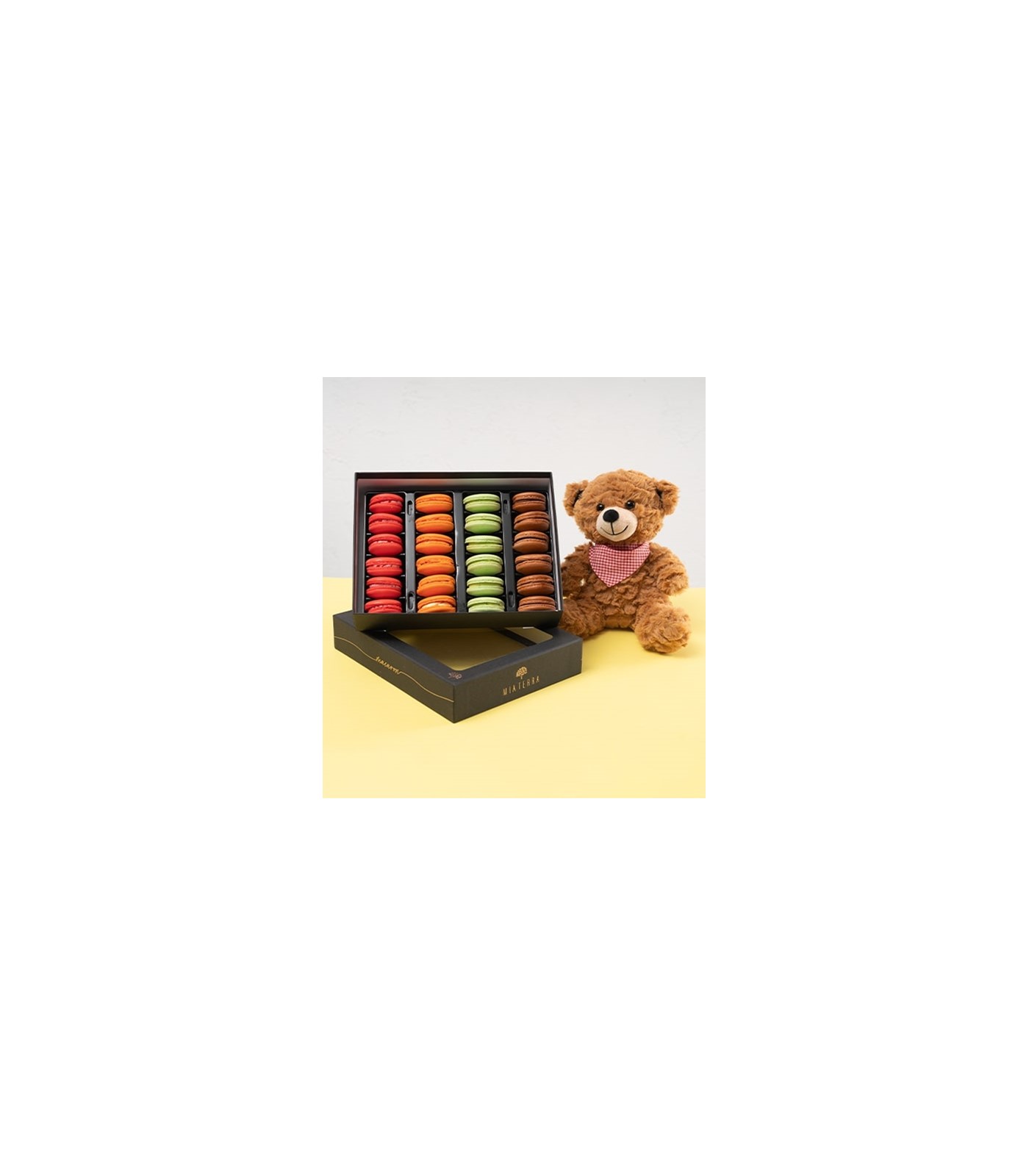 Siyah sever büyük boy karışık makaron ve peluş oyuncak