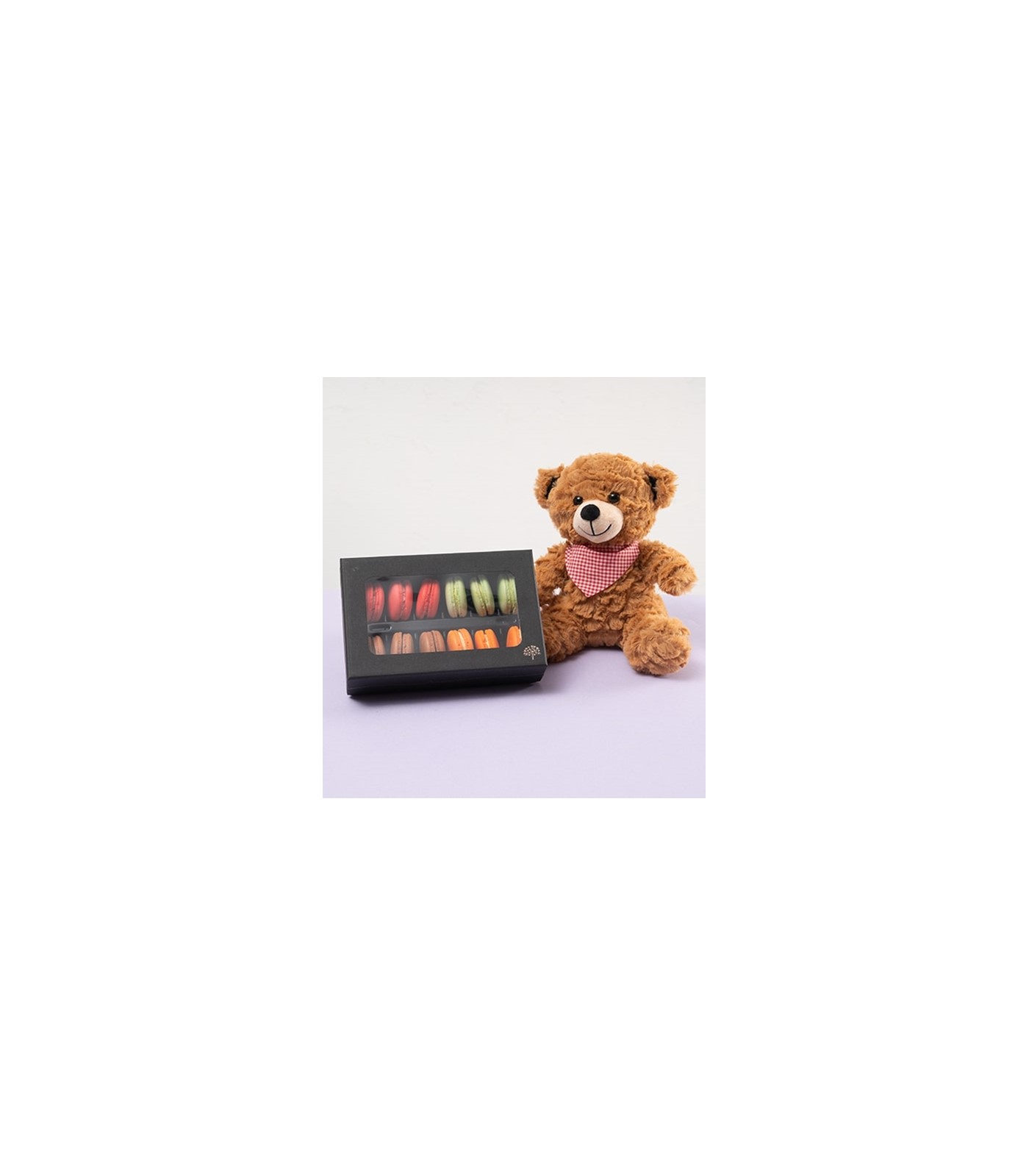 Siyah sever küçük boy karışık makaron ve peluş oyuncak
