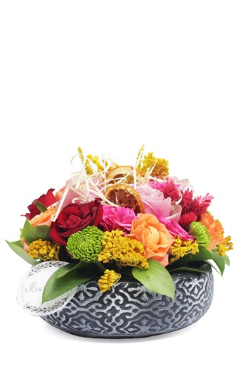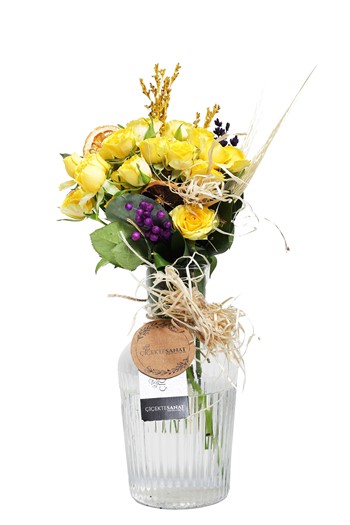 Ürünümüzün içerisinde Mor Rengi Mini Orkide, Beyaz Orkide Kandilleri ve Renkli Yosunlar mevcut