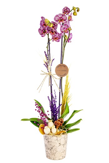 Steel White Design ürünümüzün içerisinde özel seçilmiş orkide , ve portakal kabuğu mevcut