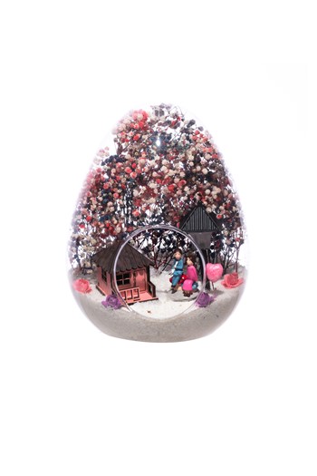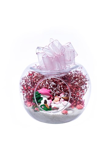 Küçük boy elma cam fanus içerisinde tasarladığımız bu çok güzel teraryum; beyaz kum, şoklanmış yosunlar, kurutulmuş bitkiler, bir adet ahşap ofis görseli ve bir adet masası başında kadın görseli kullanılarak tamamlanmıştır. Ev ve ofis ortamlarının tamamında sergilenebilir teraryumun içinde, kurutulmuş ve şoklanmış bitkiler bulunduğundan hava alması önemlidir. Açık olan kısmının kapatılmaması veya büfe vb. kapalı alanlara konulmaması gereklidir. Özellikle her ortamda yıllarca, zevkle izlenebilecek özel bir teraryumdur. Yaklaşık Ölçüleri: 20x20cm NOT: Teraryumlarda kullanılan camlar, üfleme cam işçiliğiyle üretildiğinden bazı detaylarda farklılıklar gözlenebilir. Örneğin, sap kısmı ve ağız bitiş noktalarının her biri kendine özgüdür.