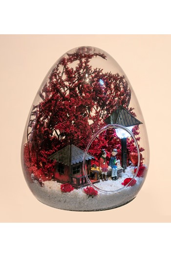 Küçük boy elma cam fanus içerisinde tasarladığımız bu kurdeleli güzel teraryum; beyaz kum, karışık renkli kurutulmuş bitkiler, renkli yapay mini güller, renkli simli kalpler, bir adet ahşap annemin bahçesi yazılı balonlu tabela ve iki adet genç kadını simgeleyen objeler kullanılarak tamamlanmıştır. Ev ve ofis ortamlarının tamamında sergilenebilir teraryumun içinde, kurutulmuş bitkiler bulunduğundan hava alması önemlidir. Açık olan kısmının kapatılmaması veya büfe vb. kapalı alanlara konulmaması gereklidir. Özellikle her ortamda yıllarca, zevkle izlenebilecek özel bir teraryumdur. Yaklaşık Ölçüleri: 20x20cm NOT: Teraryumlarda kullanılan camlar, üfleme cam işçiliğiyle üretildiğinden bazı detaylarda farklılıklar gözlenebilir. Örneğin, sap kısmı ve ağız bitiş noktalarının her biri kendine özgüdür.