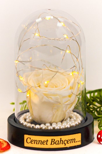 Kurdelesiyle şıklığı tamamlanmış küçük boy elma cam fanus içerisinde tasarladığımız bu güzel teraryum; beyaz kum, kurutulmuş bitkiler, yapay mini güller, simli kalpler, bir adet HOŞGELDİN BEBEK yazılı ahşap balonlu tabela ve kız bebek objeyle kurgulanmıştır. Ev ve ofis ortamlarının tamamında sergilenebilir teraryumun içinde, kurutulmuş bitkiler bulunduğundan hava alması önemlidir. Açık olan kısmının kapatılmaması veya büfe vb. kapalı alanlara konulmaması gereklidir. Özellikle her ortamda, zevkle izlenebilecek özel bir teraryumdur. Yaklaşık Ölçüleri: 20x20cm NOT: Teraryumlarda kullanılan camlar, üfleme cam işçiliğiyle üretildiğinden bazı detaylarda farklılıklar gözlenebilir. Örneğin, sap kısmı ve ağız bitiş noktalarının her biri kendine özgüdür.