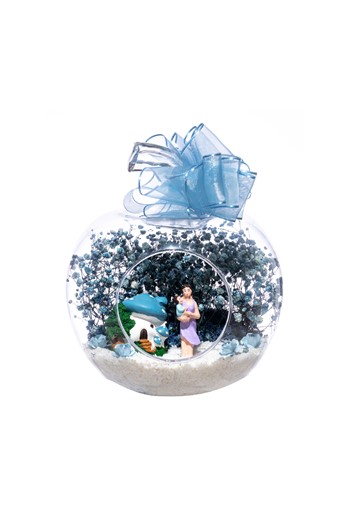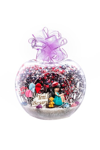 Kurdelesiyle şıklığı tamamlanmış küçük boy elma cam fanus içerisinde tasarladığımız bu güzel teraryum; beyaz kum, kurutulmuş bitkiler, yapay mini güller, bir adet HOŞGELDİN BEBEK yazılı ahşap balonlu tabela ve aydede üstünde kız bebek objeyle kurgulanmıştır. Ev ve ofis ortamlarının tamamında sergilenebilir teraryumun içinde, kurutulmuş bitkiler bulunduğundan hava alması önemlidir. Açık olan kısmının kapatılmaması veya büfe vb. kapalı alanlara konulmaması gereklidir. Özellikle her ortamda, zevkle izlenebilecek özel bir teraryumdur. Yaklaşık Ölçüleri: 20x20cm NOT: Teraryumlarda kullanılan camlar, üfleme cam işçiliğiyle üretildiğinden bazı detaylarda farklılıklar gözlenebilir. Örneğin, sap kısmı ve ağız bitiş noktalarının her biri kendine özgüdür.