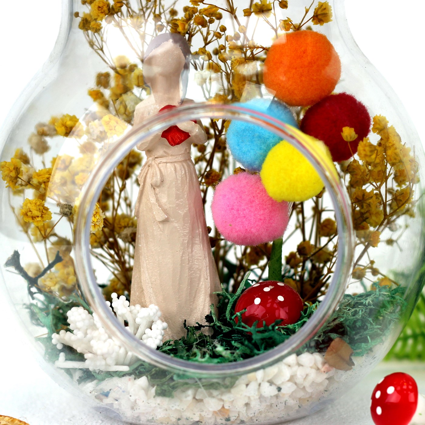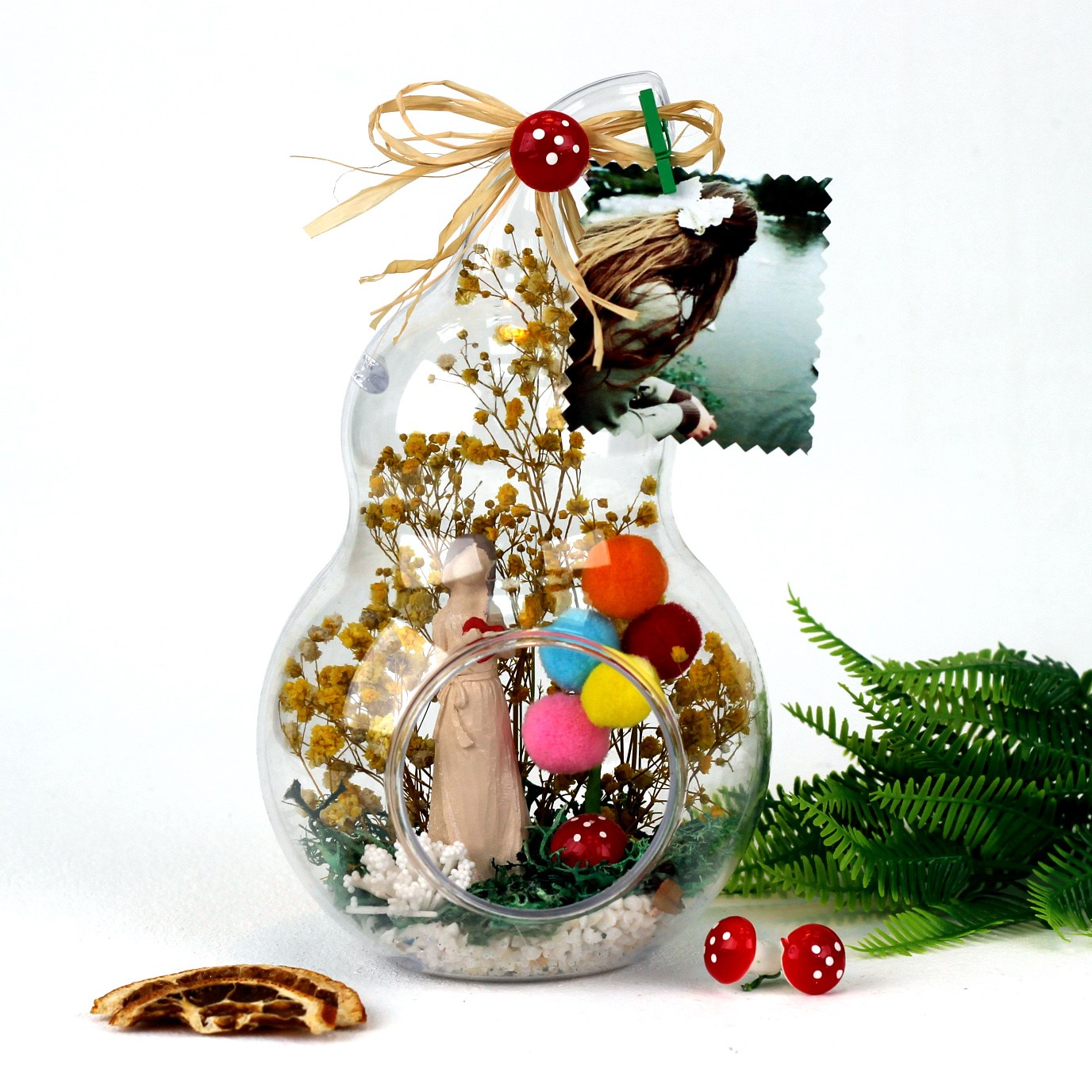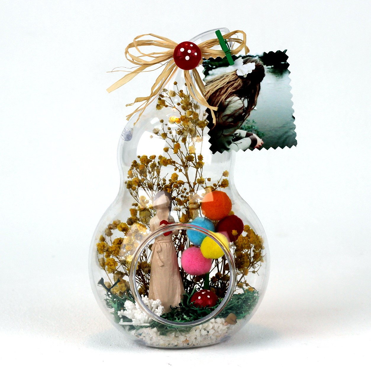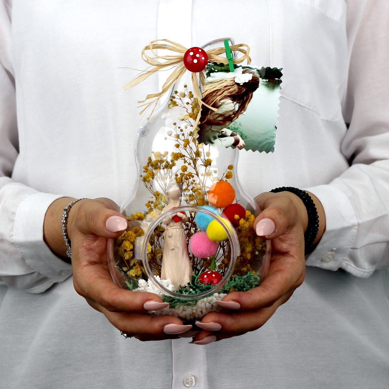 Anneye hediye, anneler günü hediyesi, eşinize hediye, teraryum, annenize teraryum olarak armağan edebileceğiniz göz alıcı mutluluk dolu unutulmaz bir hediye....</p> <p>Ürün özellikleri:</p> <p>Teraryum fanus bölümü abs’den imal edilmiş modelimizde ;şoklanmış cipso ,şoklanmış yosun,balon, kullanılarak elde hazırlanmıştır.Ürün Ölçüleri:En:13cm - Boy:13cm - Yükseklik:23cm'dir. ÜRÜNÜ İLETECEĞİNİZ FOTOĞRAF İLE KİŞİSELLEŞTİREBİLİRSİNİZ.