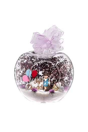 Kurdele takılı küçük boy elma cam fanus içerisinde tasarladığımız bu güzel teraryum; beyaz kum, şoklanmış yosunlar, kurutulmuş bitkiler, bir adet antika otomobil görseli, bir adet bankta sırt sırta oturan aşıkları simgeleyen objelerle tamamlanmıştır. Ev ve ofis ortamlarının tamamında sergilenebilir teraryumun içinde, kurutulmuş ve şoklanmış bitkiler bulunduğundan hava alması önemlidir. Açık olan kısmının kapatılmaması veya büfe vb. kapalı alanlara konulmaması gereklidir. Özellikle her ortamda yıllarca, zevkle izlenebilecek özel bir teraryumdur. Yaklaşık Ölçüleri: 20x20cm NOT: Teraryumlarda kullanılan camlar, üfleme cam işçiliğiyle üretildiğinden bazı detaylarda farklılıklar gözlenebilir. Örneğin, sap kısmı ve ağız bitiş noktalarının her biri kendine özgüdür.