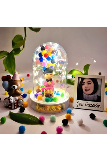 Orta boy açık cam fanus içerisinde hazırlanan, isminin hakkını veren bu özgün teraryum; beyaz kum, karışık renkli kurutulmuş bitkiler, renkli mini yapay güller, renkli simli kalpler, üzerinde renkli balonlarıyla bir adet taş ev, bir adet ışığı iki farklı renkte yanan led lamba ve yan yana oturmuş anın tadını çıkartan sevgilileri simgeleyen objeler ile birlikte kurgulanmıştır. Ev ve ofis ortamlarının tamamında sergilenebilir teraryumun içinde, kurutulmuş ve şoklanmış bitkiler bulunduğundan hava alması önemlidir. Açık olan kısmının kapatılmaması veya büfe vb. kapalı alanlara konulmaması gereklidir. Özellikle her ortamda yıllarca, zevkle izlenebilecek özel bir teraryumdur. Yaklaşık Ölçüler: 19x23 cm'dir.