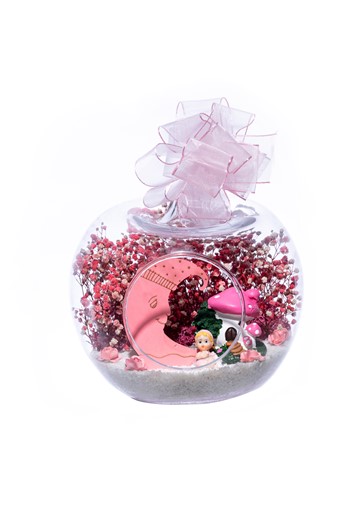 Küçük boy yumurta cam fanus içerisinde tasarladığımız bu güzel teraryum; beyaz kum, kurutulmuş bitkiler, şoklanmış yosunlar, bir adet ışığı iki farklı renkte yanan lamba ve ışığın tam altında diz dize bir ömür yaşamayı hedefleyen sevgilileri simgeleyen objelerle tamamlanmıştır. Ev ve ofis ortamlarının tamamında sergilenebilir teraryumun içinde, kurutulmuş ve şoklanmış bitkiler bulunduğundan hava alması önemlidir. Açık olan kısmının kapatılmaması veya büfe vb. kapalı alanlara konulmaması gereklidir. Özellikle her ortamda yıllarca, zevkle izlenebilecek özel bir teraryumdur. Yaklaşık Ölçüleri: 18x22cm NOT: Teraryumlarda kullanılan camlar, üfleme cam işçiliğiyle üretildiğinden bazı detaylarda farklılıklar gözlenebilir. Örneğin, sap kısmı ve ağız bitiş noktalarının her biri kendine özgüdür