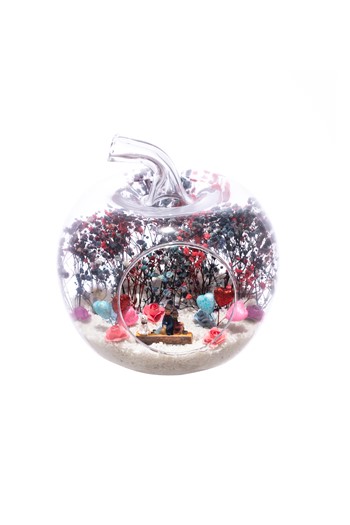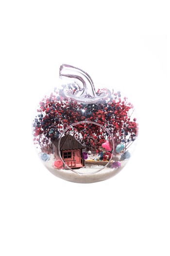 Küçük boy yumurta cam fanus içerisinde tasarladığımız, bu özgün teraryum; beyaz kum, karışık renkli kuru bitkiler, yapay mini güller, renkli simli kalpler, bir adet ahşap balonlu CANIM ÖĞRETMENİM yazılı tabela ve bir adet bayan obje kullanılarak tamamlanmıştır. Ev ve ofis ortamlarının tamamında sergilenebilir teraryumun içinde, kurutulmuş ve şoklanmış bitkiler olduğundan hava alması önemlidir. Açık olan kısmının kapatılmaması veya büfe vb. kapalı alanlara konulmaması gereklidir. Özellikle her ortamda yıllarca, zevkle izlenebilecek özel bir teraryumdur. Yaklaşık Ölçüleri: 18x22cm NOT: Teraryumlarda kullanılan camlar, üfleme cam işçiliğiyle üretildiğinden bazı detaylarda farklılıklar gözlenebilir. Örneğin, ağız bitiş noktalarının her biri kendine özgüdür.