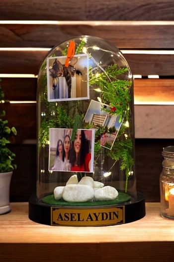Küçük boy elma cam fanus içerisinde tasarladığımız bu güzel teraryum; beyaz kum, karışık renkli kurutulmuş bitkiler, renkli yapay mini güller, renkli simli kalpler, bir adet ahşap canım annem yazılı balonlu tabela ve bir adet lila elbiseli genç kadını simgeleyen objeler kullanılarak tamamlanmıştır. Ev ve ofis ortamlarının tamamında sergilenebilir teraryumun içinde, kurutulmuş bitkiler bulunduğundan hava alması önemlidir. Açık olan kısmının kapatılmaması veya büfe vb. kapalı alanlara konulmaması gereklidir. Özellikle her ortamda yıllarca, zevkle izlenebilecek özel bir teraryumdur. Yaklaşık Ölçüleri: 20x20cm NOT: Teraryumlarda kullanılan camlar, üfleme cam işçiliğiyle üretildiğinden bazı detaylarda farklılıklar gözlenebilir. Örneğin, sap kısmı ve ağız bitiş noktalarının her biri kendine özgüdür.