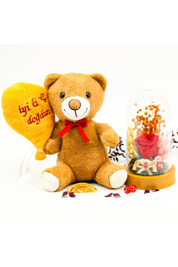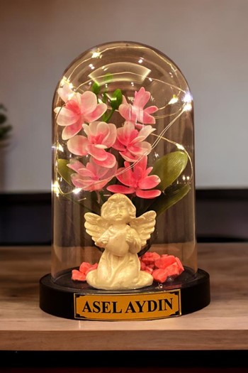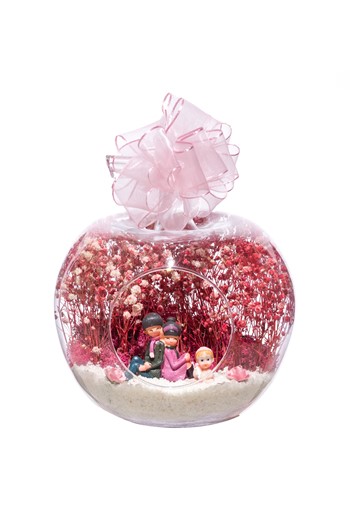 Küçük boy, Paşabahçe cam fanus içerisinde tasarladığımız bu güzel teraryum; beyaz kum, kurutulmuş bitkiler, bir adet erkek bebek, bir adet mavi ahşap karyola, bir adet mavi balon ahşap fil objeler kullanılarak tamamlanmıştır. Ev ve ofis ortamlarının tamamında sergilenebilir teraryumun içinde kurutulmuş bitkiler bulunduğundan hava alması önemlidir. Açık olan kısmının kapatılmaması veya büfe vb. kapalı alanlara konulmaması gereklidir. Özellikle her ortamda yıllarca, zevkle izlenebilecek özel bir teraryumdur. Yaklaşık Ölçüleri: 16x18 cm