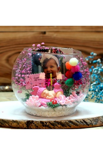 Üzerinde şık kurdelesiyle küçük boy elma cam fanus içerisinde tasarladığımız bu çok güzel teraryum; beyaz kum, şoklanmış yosunlar, kurutulmuş bitkiler, yapay güller, bir adet mantar ev, bir adet erkek çocuk ve bir adet emekleyen şirin erkek bebek obje kullanılarak tamamlanmıştır. Ev ve ofis ortamlarının tamamında sergilenebilir teraryumun içinde, kurutulmuş ve şoklanmış bitkiler bulunduğundan hava alması önemlidir. Açık olan kısmının kapatılmaması veya büfe vb. kapalı alanlara konulmaması gereklidir. Özellikle her ortamda yıllarca, zevkle izlenebilecek özel bir teraryumdur. Yaklaşık Ölçüleri: 20x20cm NOT: Teraryumlarda kullanılan camlar, üfleme cam işçiliğiyle üretildiğinden bazı detaylarda farklılıklar gözlenebilir. Örneğin, sap kısmı ve ağız bitiş noktalarının her biri kendine özgüdür.