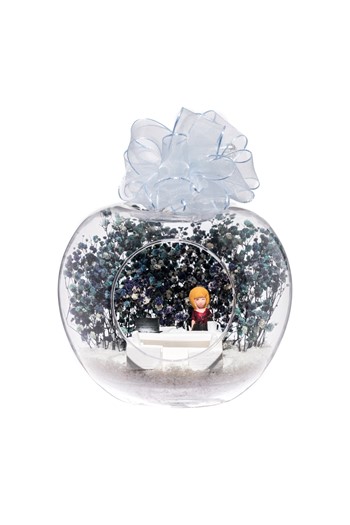 Kurdele ile tamamlanmış küçük boy elma cam fanus içerisinde tasarladığımız bu çok güzel teraryum; beyaz kum, şoklanmış yosunlar, kurutulmuş bitkiler, yapay güller, bir adet mantar ev ve bir leyleğin sürdüğü motorsiklette oturanerkek bebeği simgeleyen objelerle tamamlanmıştır. Ev ve ofis ortamlarının tamamında sergilenebilir teraryumun içinde,kurutulmuş ve şoklanmış bitkiler bulunduğundan hava alması önemlidir. Açık olan kısmının kapatılmaması veya büfe vb. kapalı alanlara konulmaması gereklidir. Özellikle her ortamda yıllarca, zevkle izlenebilecek özel bir teraryumdur. Yaklaşık Ölçüleri: 20x20cm NOT: Teraryumlarda kullanılan camlar, üfleme cam işçiliğiyle üretildiğinden bazı detaylarda farklılıklar gözlenebilir. Örneğin, sap kısmı ve ağız bitiş noktalarının her biri kendine özgüdür.