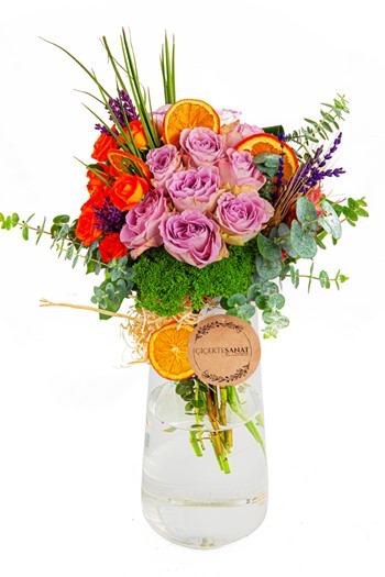Üzerinde şık kurdelesiyle küçük boy elma cam fanus içerisinde tasarladığımız buçok güzelteraryum; beyaz kum, şoklanmış yosunlar, kurutulmuş bitkiler, yapay güller, bir adet mantar evve bir adet bebek arabasında şapkalı kızbebek obje kullanılarak tamamlanmıştır. Ev ve ofis ortamlarının tamamında sergilenebilir teraryumun içinde,kurutulmuş ve şoklanmış bitkiler bulunduğundan hava alması önemlidir. Açık olan kısmının kapatılmaması veya büfe vb. kapalı alanlara konulmaması gereklidir. Özellikle her ortamda yıllarca, zevkle izlenebilecek özel bir teraryumdur. Yaklaşık Ölçüleri: 20x20cm NOT: Teraryumlarda kullanılan camlar, üfleme cam işçiliğiyle üretildiğinden bazı detaylarda farklılıklar gözlenebilir. Örneğin, sap kısmı ve ağız bitiş noktalarının her biri kendine özgüdür.