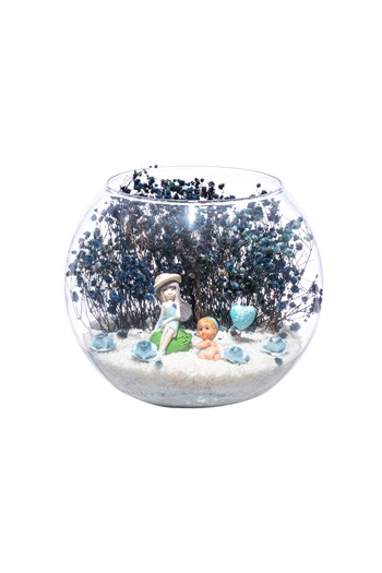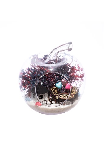 Küçük boy yumurta cam fanus içerisinde tasarladığımız bu güzel teraryum; beyaz kum, kurutulmuş bitkiler, şoklanmış yosunlar, yapay güller, bir adet pembe ahşap ev görseli, bir adet ışığı iki farklı renkte yanan led sokak lambası görseli ve bir adet elinde çantasıyla kumral iş kadınını simgeleyen obje kullanılarak tamamlanmıştır. Ev ve ofis ortamlarının tamamında sergilenebilir teraryumun içinde, kurutulmuş ve şoklanmış bitkiler bulunduğundan hava alması önemlidir. Açık olan kısmının kapatılmaması veya büfe vb. kapalı alanlara konulmaması gereklidir. Özellikle her ortamda yıllarca, zevkle izlenebilecek özel bir teraryumdur. Yaklaşık Ölçüleri: 18x22cm NOT: Teraryumlarda kullanılan camlar, üfleme cam işçiliğiyle üretildiğinden bazı detaylarda farklılıklar gözlenebilir. Örneğin, yumurta şekli ve ağız bitiş noktalarının her biri kendine özgüdür.