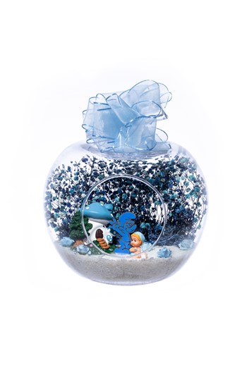 Kurdele takılı küçük boy elma cam fanus içerisinde tasarladığımız bu çok güzel teraryum; beyaz kum, şoklanmış yosunlar, kurutulmuş bitkiler, yapay güller, bir adet ahşap pembe ev görseli, bir adet ışığı iki farklı renkte yanan led sokak lambası ve bir adet sarışın iş kadınını simgeleyen obje ile tamamlanmıştır. Ev ve ofis ortamlarının tamamında sergilenebilir teraryumun içinde, kurutulmuş ve şoklanmış bitkiler bulunduğundan hava alması önemlidir. Açık olan kısmının kapatılmaması veya büfe vb. kapalı alanlara konulmaması gereklidir. Özellikle her ortamda yıllarca, zevkle izlenebilecek özel bir teraryumdur. Yaklaşık Ölçüleri: 20x20cm NOT: Teraryumlarda kullanılan camlar, üfleme cam işçiliğiyle üretildiğinden bazı detaylarda farklılıklar gözlenebilir. Örneğin, sap kısmı ve ağız bitiş noktalarının her biri kendine özgüdür.