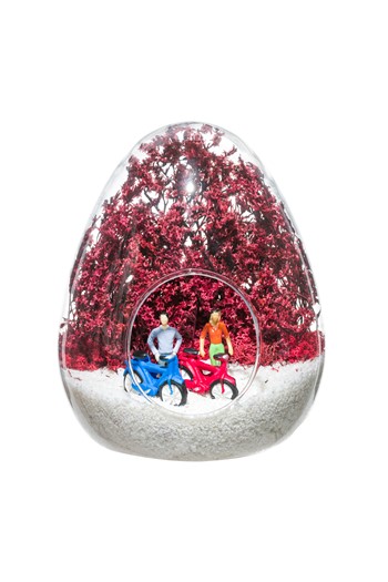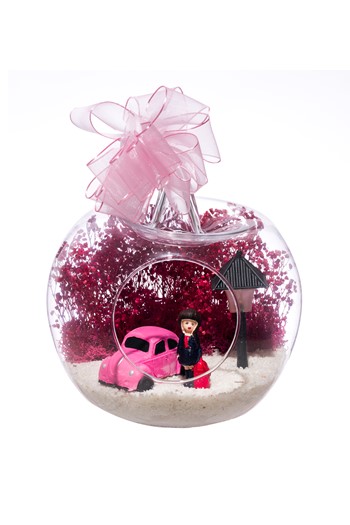 Küçük boy yumurta cam fanus içerisinde tasarladığımız, bu özgün teraryum; beyaz kum, karışık renkli kurutulmuş bitkiler, renkli mini yapay güller, renkli simli kalpler, bir adet ışığı iki farklı renkte yanan lamba ve bahçede yan yana sohbet eden bir çift genç kızı simgeleyen objeler kullanılarak tamamlanmıştır. Ev ve ofis ortamlarının tamamında sergilenebilir teraryumun içinde, kurutulmuş ve şoklanmış bitkiler olduğundan hava alması önemlidir. Açık olan kısmının kapatılmaması veya büfe vb. kapalı alanlara konulmaması gereklidir. Özellikle her ortamda yıllarca, zevkle izlenebilecek özel bir teraryumdur. Yaklaşık Ölçüleri: 18x22cm NOT: Teraryumlarda kullanılan camlar, üfleme cam işçiliğiyle üretildiğinden bazı detaylarda farklılıklar gözlenebilir. Örneğin, ağız bitiş noktalarının her biri kendine özgüdür.