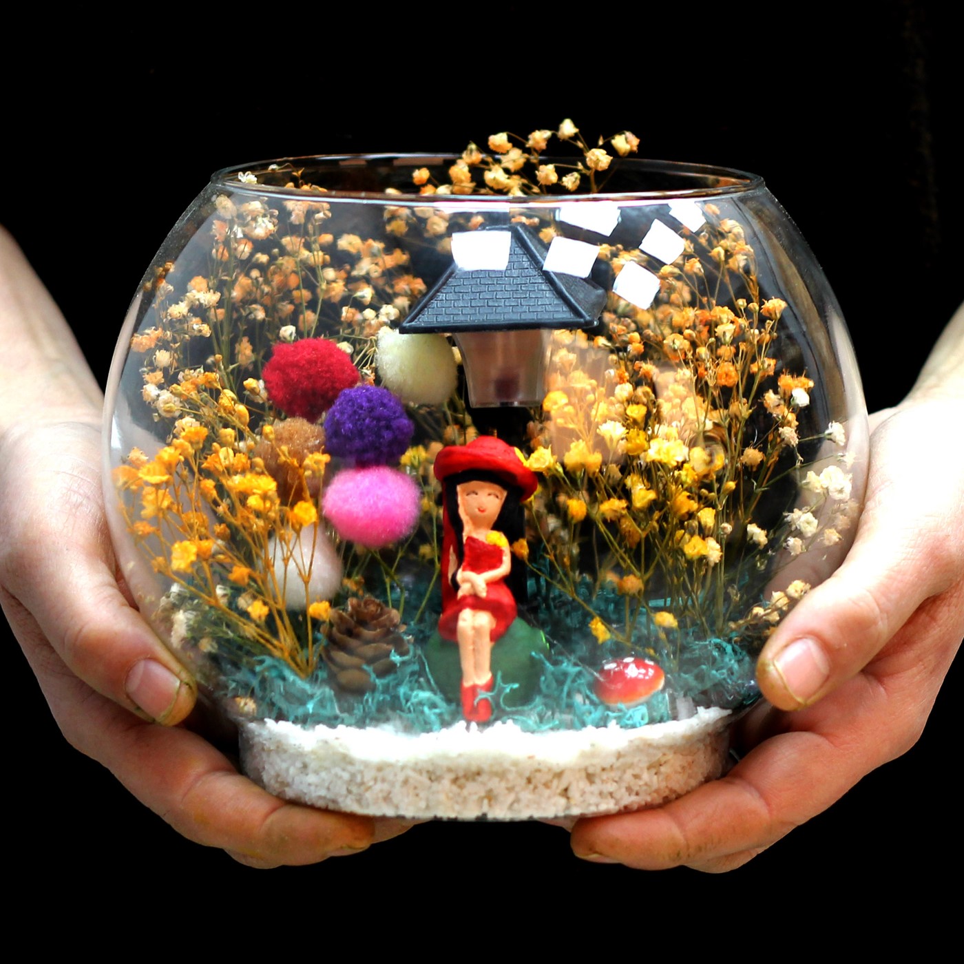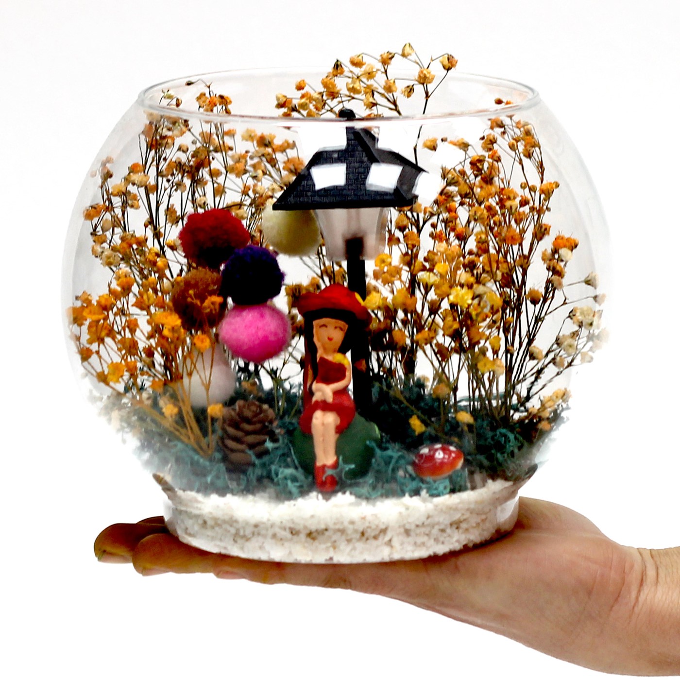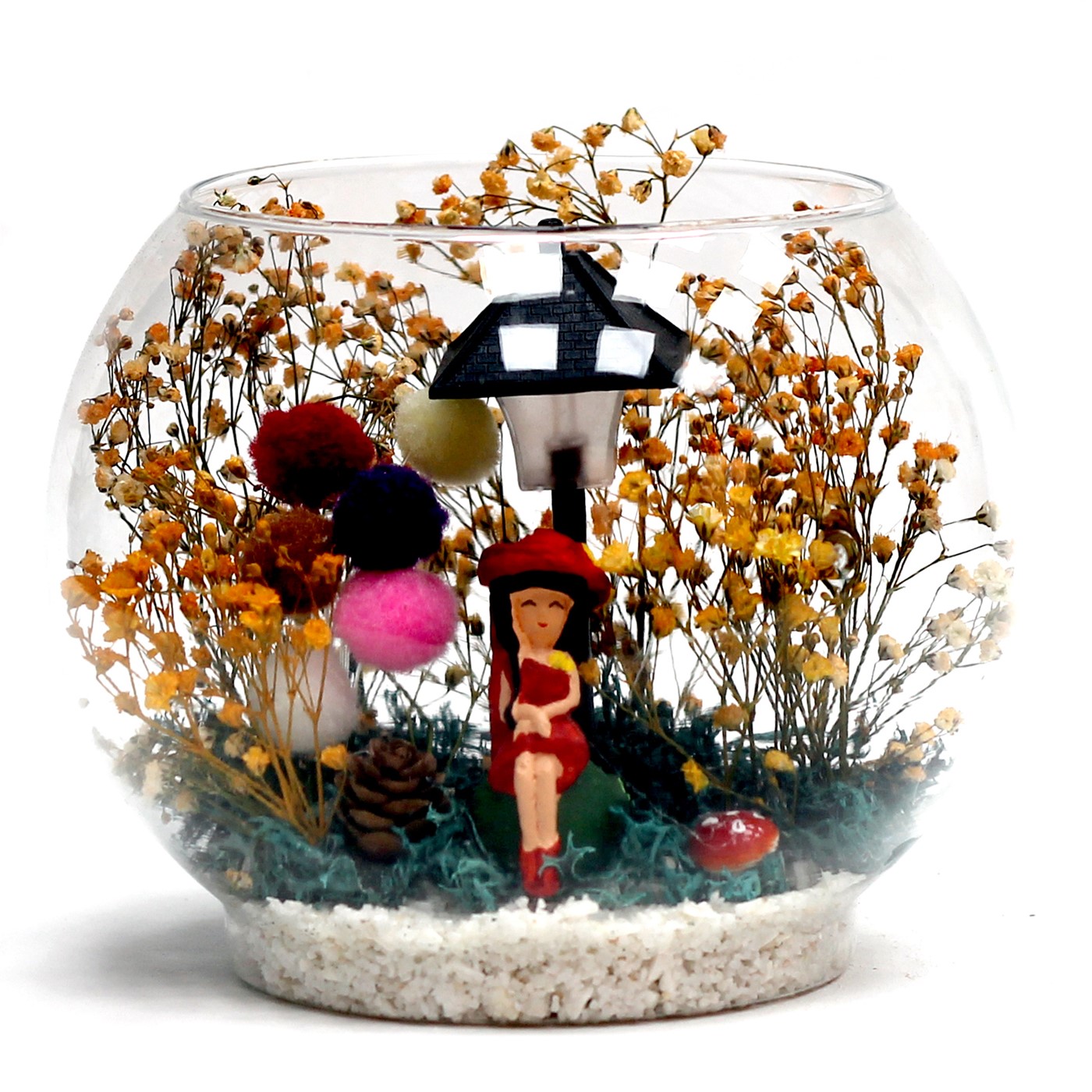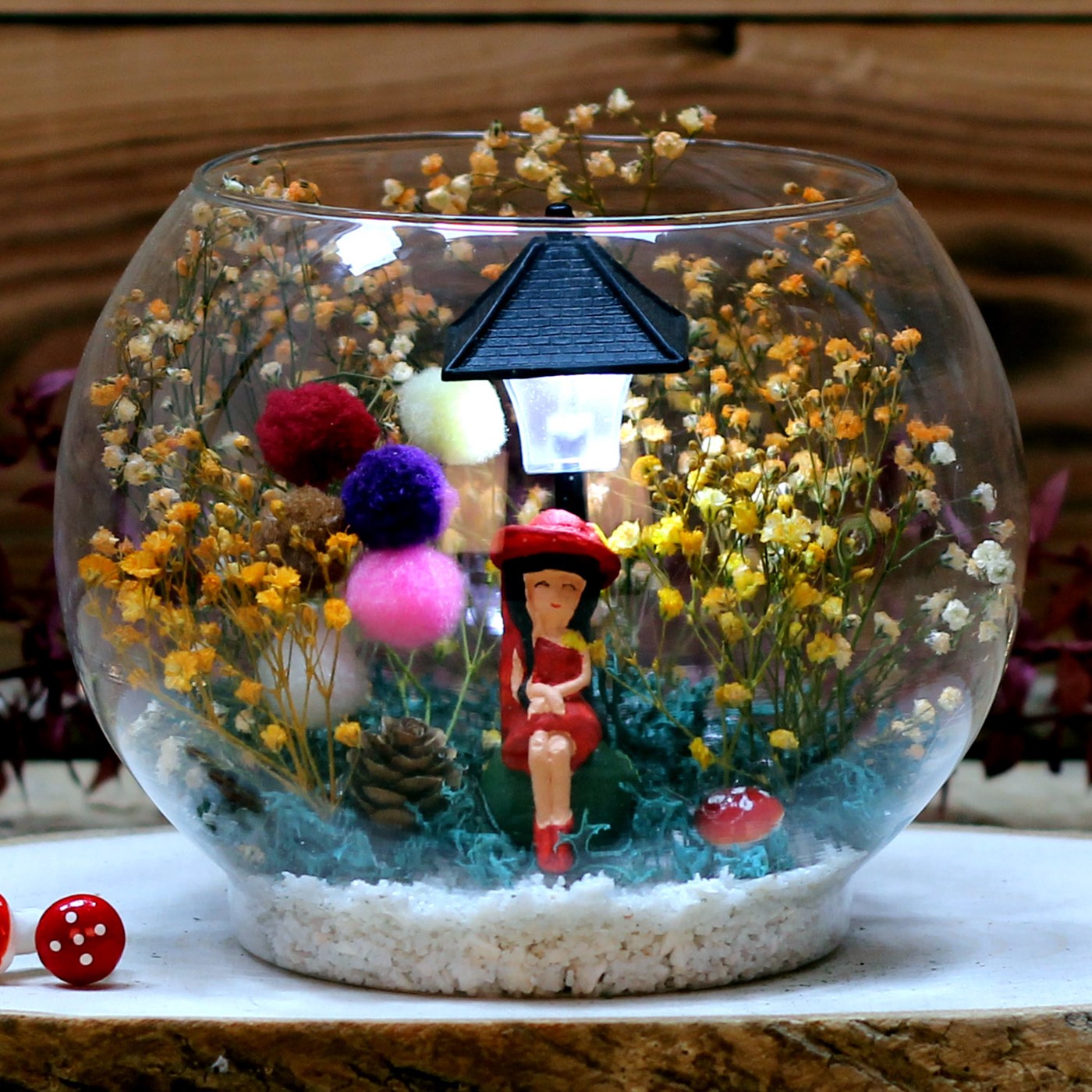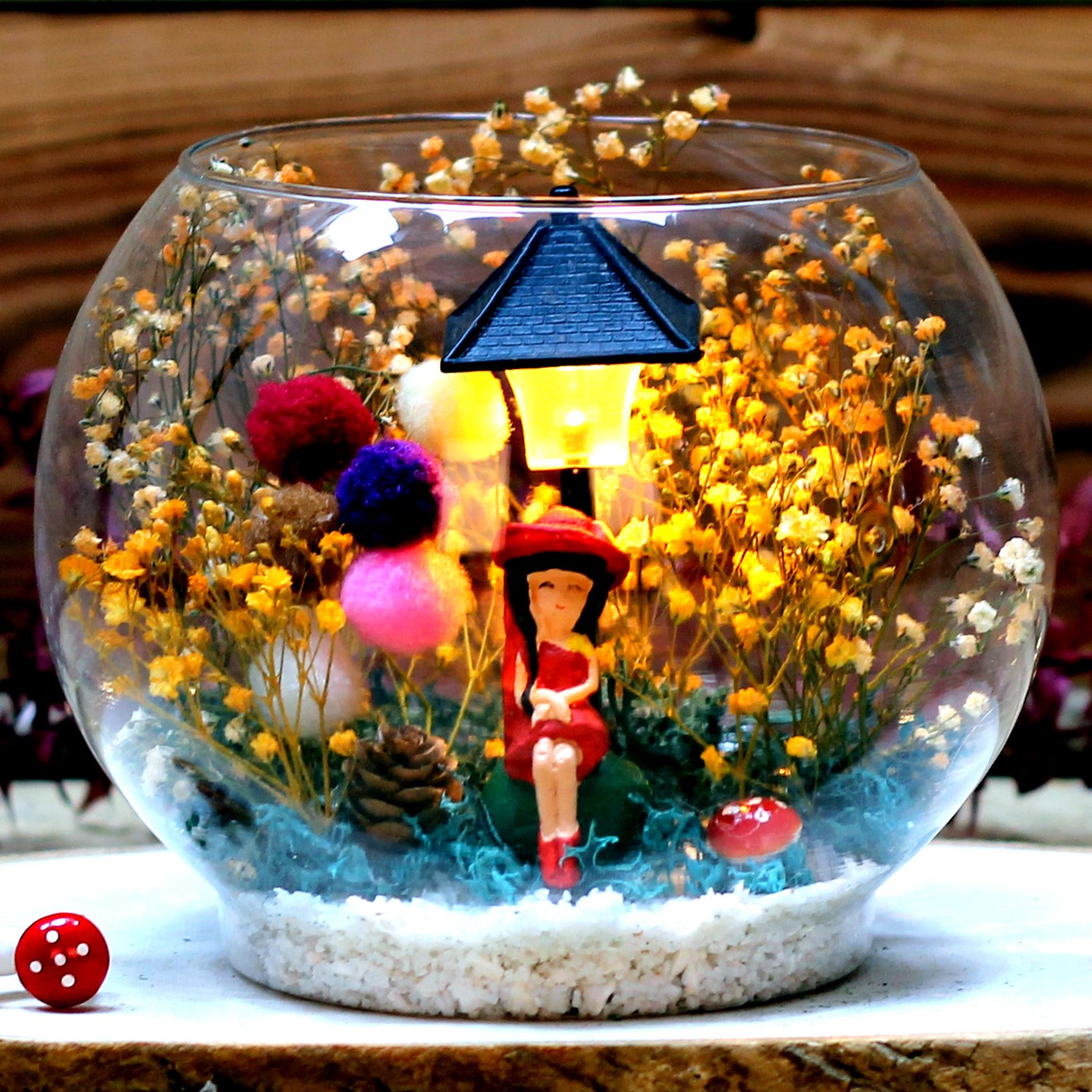 Arkadaşa hediye ,doğum günü hediyesi, sevgiliye hediye,teraryum,arkadaşa teraryum olarak armağan edebileceğiniz göz alıcı mutluluk dolu unutulmaz bir hediye...</p> <p>Ürün özellikleri:</p> <p>Cam fanus içerisinde tasarladığımız bu alıcısına özel teraryum; beyaz kum, kurutulmuş bitkiler, bir adet ışığı iki farklı renkte yanan led sokak lambası,sevgili biblosu kullanılarak sizler için tasarlanmıştır.</p> <p>Her biri kendine özgü bir tasarım olup, son derece temiz ve titiz çalışılmaktadır.</p> <p>Ürünlerimizde doğal malzemeler kullanıldığı için renkler stok durumuna göre -çok nadir- değişiklik gösterebilir.</p> <p>Ürün Ölçüleri:En:18cm - Boy:18cm - Yükseklik:25cm'dir.