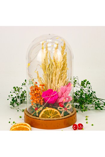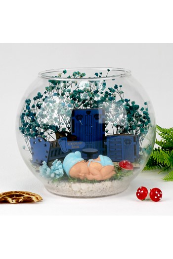 Küçük boy elma cam fanus içerisinde tasarladığımız bu kurdeleli teraryum; beyaz kum, yapay mini güller, kurutulmuş bitkilerle beraber bir adet İYİ Kİ DOĞDUN yazılı ahşap balonlu tabela ve bir adet yan yana aşıkları simgeleyen objeyle tamamlanmıştır. Ev ve ofis ortamlarının tamamında sergilenebilir teraryumun içinde, kurutulmuş bitkiler bulunduğundan hava alması önemlidir. Açık olan kısmının kapatılmaması veya büfe vb. kapalı alanlara konulmaması gereklidir. Özellikle her ortamda, zevkle izlenebilecek çok özel bir teraryumdur. Yaklaşık Ölçüleri: 20x20cm NOT: Teraryumlarda kullanılan camlar, üfleme cam işçiliğiyle üretildiğinden bazı detaylarda farklılıklar gözlenebilir. Örneğin, sap kısmı ve ağız bitiş noktalarının her biri kendine özgüdür.