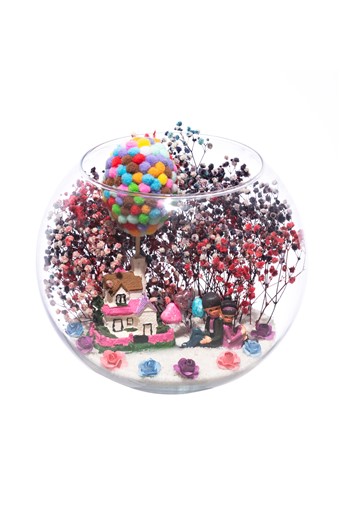 Küçük boy elma cam fanus içerisinde tasarladığımız bu çok güzel teraryum; beyaz kum, şoklanmış yosunlar, kurutulmuş bitkiler, bir adet el yapımı beyaz ofis görseli ve bir adet kadın görseli kullanılarak tamamlanmıştır. Ev ve ofis ortamlarının tamamında sergilenebilir teraryumun içinde, kurutulmuş ve şoklanmış bitkiler bulunduğundan hava alması önemlidir. Açık olan kısmının kapatılmaması veya büfe vb. kapalı alanlara konulmaması gereklidir. Özellikle her ortamda yıllarca, zevkle izlenebilecek özel bir teraryumdur. Yaklaşık Ölçüleri: 20x20cm NOT: Teraryumlarda kullanılan camlar, üfleme cam işçiliğiyle üretildiğinden bazı detaylarda farklılıklar gözlenebilir. Örneğin, sap kısmı ve ağız bitiş noktalarının her biri kendine özgüdür.