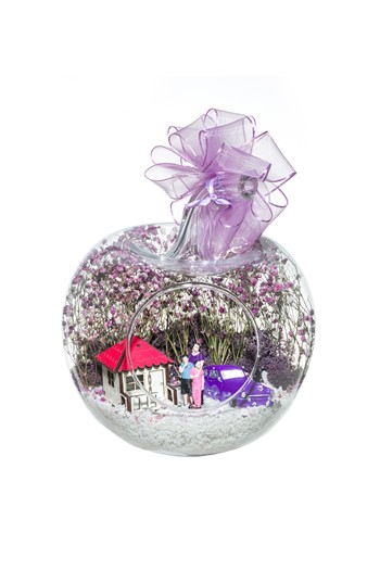 Küçük boy yumurta cam fanus içerisinde tasarladığımız bu özgün teraryum; beyaz kum, kurutulmuş bitkiler, şoklanmış yosunlar, bir adet simli kalp, renkli yapay mini çiçekler ve bankta yan yana oturan sevgilileri simgeleyen obje kullanılarak tamamlanmıştır. Ev ve ofis ortamlarının tamamında sergilenebilir teraryumun içinde, kurutulmuş bitkiler olduğundan hava alması önemlidir. Açık olan kısmının kapatılmaması veya büfe vb. kapalı alanlara konulmaması gereklidir. Özellikle her ortamda, zevkle izlenebilecek özel bir teraryumdur. Yaklaşık Ölçüleri: 18x22cm NOT: Teraryumlarda kullanılan camlar, üfleme cam işçiliğiyle üretildiğinden bazı detaylarda farklılıklar gözlenebilir. Örneğin, ağız bitiş noktalarının her biri kendine özgüdür.