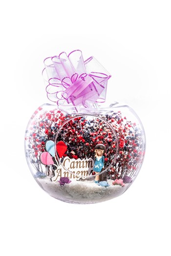 Kurdele takılı küçük boy elma cam fanus içerisinde tasarladığımız bu güzel teraryum; beyaz kum, şoklanmış yosunlar, kurutulmuş bitkiler, bir adet antika otomobil görseli, bir adet bir birlerine sarılmış aşıkları simgeleyen objelerle tamamlanmıştır. Ev ve ofis ortamlarının tamamında sergilenebilir teraryumun içinde, kurutulmuş ve şoklanmış bitkiler bulunduğundan hava alması önemlidir. Açık olan kısmının kapatılmaması veya büfe vb. kapalı alanlara konulmaması gereklidir. Özellikle her ortamda yıllarca, zevkle izlenebilecek özel bir teraryumdur. Yaklaşık Ölçüleri: 20x20cm NOT: Teraryumlarda kullanılan camlar, üfleme cam işçiliğiyle üretildiğinden bazı detaylarda farklılıklar gözlenebilir. Örneğin, sap kısmı ve ağız bitiş noktalarının her biri kendine özgüdür.