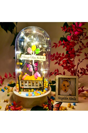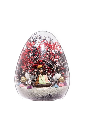 Küçük boy elma cam fanus içerisinde tasarladığımız bu özel teraryum; beyaz kum, şoklanmış yosunlar, kurutulmuş bitkiler ve çiçekler, bir adet ışığı 2 farklı renkte yanan lamba, bir adet yan yana sohbet eden sevgilileri simgeleyen objelerle tamamlanmıştır. Ev ve ofis ortamlarının tamamında sergilenebilir teraryumun içinde canlı bitki bulunmadığından, herhangi bir bakıma ihtiyacı yoktur. Özellikle her ortamda yıllarca, zevkle izlenebilecek özel bir teraryumdur. Yaklaşık Ölçüleri: 20x20cm NOT: Teraryumlarda kullanılan camlar, üfleme cam işçiliğiyle üretildiğinden bazı detaylarda farklılıklar gözlenebilir. Örneğin, sap kısmı ve ağız bitiş noktalarının her biri kendine özgüdür.