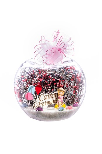 Küçük boy yumurta cam fanus içerisinde tasarladığımız bu güzel teraryum; beyaz kum, kurutulmuş bitkiler, şoklanmış yosunlar, yapay güller, bir adet sarı ahşap ev görseli, bir adet ışığı iki farklı renkte yanan led sokak lambası görseli ve bir adet sırt sırta anı paylaşan sevgilileri simgeleyen obje ile kurgulanarak tamamlanmıştır. Ev ve ofis ortamlarının tamamında sergilenebilir teraryumun içinde, kurutulmuş ve şoklanmış bitkiler bulunduğundan hava alması önemlidir. Açık olan kısmının kapatılmaması veya büfe vb. kapalı alanlara konulmaması gereklidir. Özellikle her ortamda yıllarca, zevkle izlenebilecek özel bir teraryumdur. Yaklaşık Ölçüleri: 18x22cm NOT: Teraryumlarda kullanılan camlar, üfleme cam işçiliğiyle üretildiğinden bazı detaylarda farklılıklar gözlenebilir. Örneğin, yumurta şekli ve ağız bitiş noktalarının her biri kendine özgüdür.