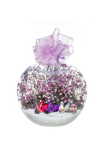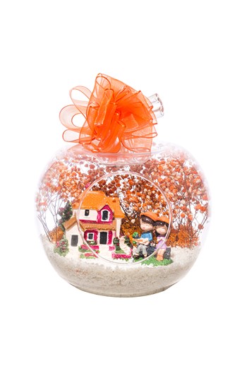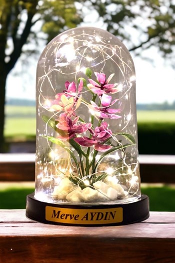 Orta boy açık cam fanus içerisinde hazırlanan bu özgün teraryum; beyaz kum, kurutulmuş bitkiler, bir adet mini ofis görseli ve bir adet çalışan bayanı simgeleyen objeyle birlikte kurgulanmıştır. Ev ve ofis ortamlarının tamamında sergilenebilir teraryumun içinde, kurutulmuş ve şoklanmış bitkiler bulunduğundan hava alması önemlidir. Açık olan kısmının kapatılmaması veya büfe vb. kapalı alanlara konulmaması gereklidir. Özellikle her ortamda zevkle izlenebilecek özel bir teraryumdur. Yaklaşık Ölçüler: 19x23 cm'dir.