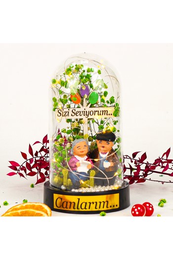 Küçük boy elma cam fanus içerisinde tasarladığımız bu kurdeleli güzel teraryum; beyaz kum, karışık renkli kurutulmuş bitkiler, renkli yapay mini güller, bir adet ahşap yeni işinde başarılar yazılı balonlu tabela ve bir adet sarışın genç kadını simgeleyen objeler kullanılarak tamamlanmıştır. Ev ve ofis ortamlarının tamamında sergilenebilir teraryumun içinde, kurutulmuş bitkiler bulunduğundan hava alması önemlidir. Açık olan kısmının kapatılmaması veya büfe vb. kapalı alanlara konulmaması gereklidir. Özellikle her ortamda yıllarca, zevkle izlenebilecek özel bir teraryumdur. Yaklaşık Ölçüleri: 20x20cm NOT: Teraryumlarda kullanılan camlar, üfleme cam işçiliğiyle üretildiğinden bazı detaylarda farklılıklar gözlenebilir. Örneğin, sap kısmı ve ağız bitiş noktalarının her biri kendine özgüdür.