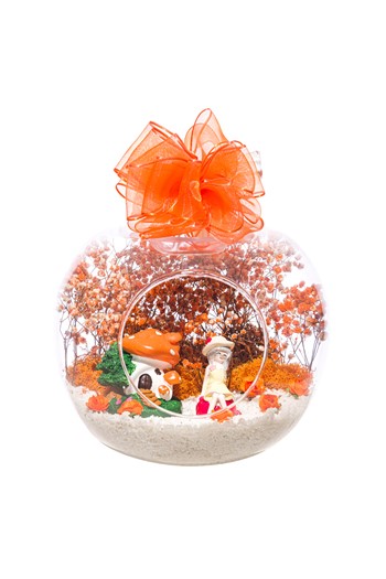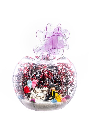 Küçük boy yumurta cam fanus içerisinde tasarladığımız bu özgün teraryum; beyaz kum, karışık renkli kurutulmuş bitkiler, renkli simli kalpler, renkli yapay mini güller, bir adet YENİ İŞİNDE BAŞARILAR yazılı ahşap balonlu tabela ve bayan obje kullanılarak tamamlanmıştır. Ev ve ofis ortamlarının tamamında sergilenebilir teraryumun içinde, kurutulmuş bitkiler olduğundan hava alması önemlidir. Açık olan kısmının kapatılmaması veya büfe vb. kapalı alanlara konulmaması gereklidir. Özellikle her ortamda, zevkle izlenebilecek özel bir teraryumdur. Yaklaşık Ölçüleri: 18x22cm NOT: Teraryumlarda kullanılan camlar, üfleme cam işçiliğiyle üretildiğinden bazı detaylarda farklılıklar gözlenebilir. Örneğin, ağız bitiş noktalarının her biri kendine özgüdür.