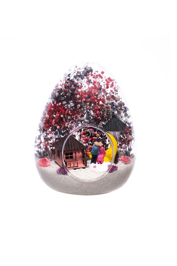 Küçük boy yumurta cam fanus içerisinde tasarladığımız bu özgün teraryum; beyaz kum, karışık renkli kurutulmuş bitkiler, renkli simli kalpler, renkli yapay mini güller, bir adet YENİ İŞİNDE BAŞARILAR yazılı ahşap balonlu tabela ve bayan obje kullanılarak tamamlanmıştır. Ev ve ofis ortamlarının tamamında sergilenebilir teraryumun içinde, kurutulmuş bitkiler olduğundan hava alması önemlidir. Açık olan kısmının kapatılmaması veya büfe vb. kapalı alanlara konulmaması gereklidir. Özellikle her ortamda, zevkle izlenebilecek özel bir teraryumdur. Yaklaşık Ölçüleri: 18x22cm NOT: Teraryumlarda kullanılan camlar, üfleme cam işçiliğiyle üretildiğinden bazı detaylarda farklılıklar gözlenebilir. Örneğin, ağız bitiş noktalarının her biri kendine özgüdür.