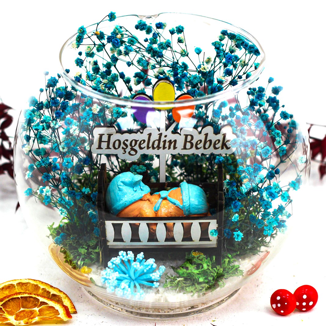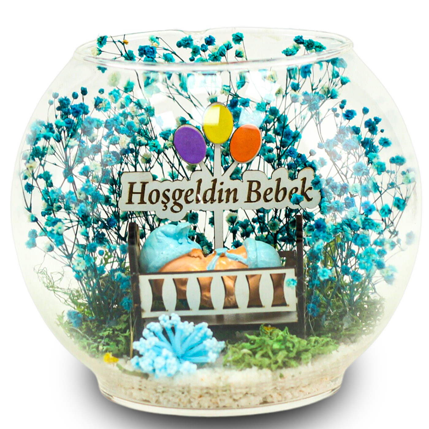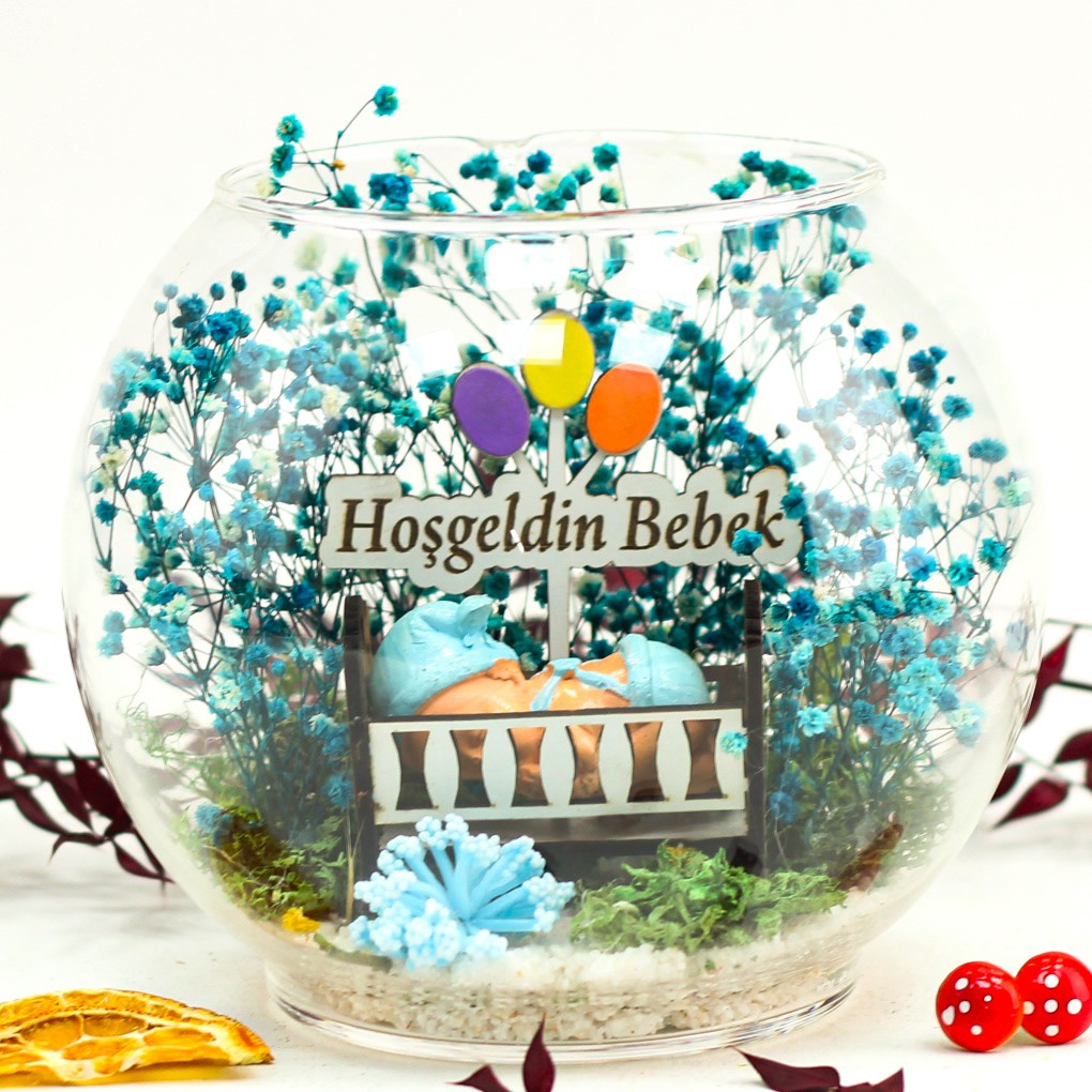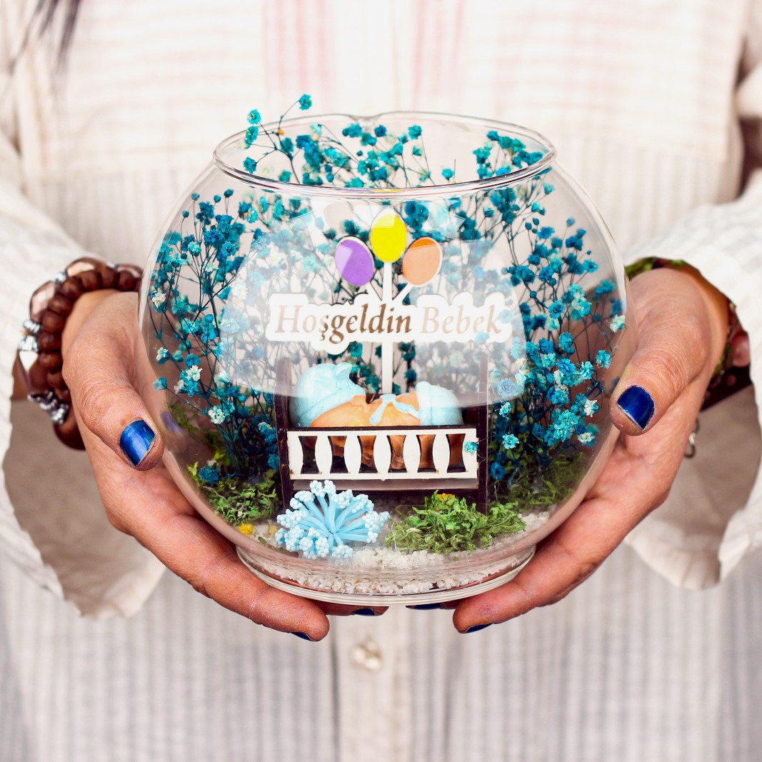 Yeni doğan hediyesi ,yeni bebek hediyesi,teraryum, sevdikleriniz için,güzel bir seçim yapabileceğiniz,anlamlı sadece teraryum değil sizlerin değerli duygularını içerdiği bir hediye...</p> <p>Cam fanus içinde yenidoğan bebek için hazırlanmış modelimizde;ürünümüz,şoklanmış cipso ve şoklanmış yosunla beraber,taş,kozalak,kuru ağaç kabuğu kullanılarak elde hazırlanmıştır. Bebek biblosu,1 adet beşik, 1 adet hoşgeldin bebek panosu kullanılmıştır. 2 farklı şekilde yanan peri led ışıklandırma ile renklendirilmiştir.</p> <p>Her biri kendine özgü bir tasarım olup, son derece temiz ve titiz çalışılmaktadır.</p> <p>Ürünlerimizde doğal malzemeler kullanıldığı için renkler stok durumuna göre -çok nadir- değişiklik gösterebilir.</p> <p>Ürün Ölçüleri: En:18cm Boy:18cm'dir.<