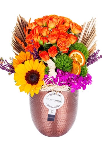 Küçük boy elma cam fanus içerisinde tasarladığımız bu kurdeleli teraryum, yeni işine başlayanları, gördükleri anda mutlu edecek şekilde tasarlandı. Tasarımımız; beyaz kum, kurutulmuş bitkilerle beraber bir adet mini ofis görseli ve bir adet bayan objeyle tamamlanmıştır. Ev ve ofis ortamlarının tamamında sergilenebilir teraryumun içinde, kurutulmuş bitkiler bulunduğundan hava alması önemlidir. Açık olan kısmının kapatılmaması veya büfe vb. kapalı alanlara konulmaması gereklidir.. Özellikle her ortamda, zevkle izlenebilecek çok özel bir teraryumdur. Yaklaşık Ölçüleri: 20x20cm NOT: Teraryumlarda kullanılan camlar, üfleme cam işçiliğiyle üretildiğinden bazı detaylarda farklılıklar gözlenebilir. Örneğin, sap kısmı ve ağız bitiş noktalarının her biri kendine özgüdür.