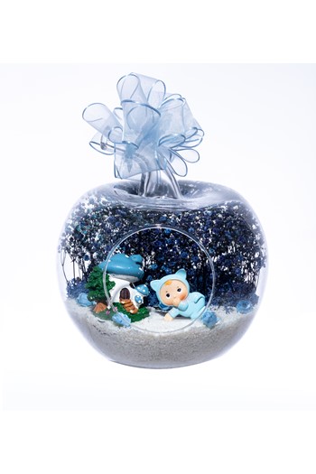 Küçük boy elma cam fanus içerisinde tasarladığımız bu kurdeleli teraryum, yeni işine başlayanları, gördükleri anda mutlu edecek şekilde tasarlandı. Tasarımımız; beyaz kum, kurutulmuş bitkilerle beraber bir adet mini ofis görseli ve bir adet bayan objeyle tamamlanmıştır. Ev ve ofis ortamlarının tamamında sergilenebilir teraryumun içinde, kurutulmuş bitkiler bulunduğundan hava alması önemlidir. Açık olan kısmının kapatılmaması veya büfe vb. kapalı alanlara konulmaması gereklidir.. Özellikle her ortamda, zevkle izlenebilecek çok özel bir teraryumdur. Yaklaşık Ölçüleri: 20x20cm NOT: Teraryumlarda kullanılan camlar, üfleme cam işçiliğiyle üretildiğinden bazı detaylarda farklılıklar gözlenebilir. Örneğin, sap kısmı ve ağız bitiş noktalarının her biri kendine özgüdür.