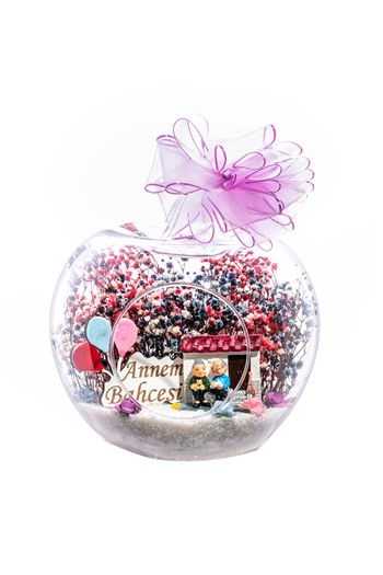 Küçük boy elma cam fanus içerisinde tasarladığımız bu teraryum, yeni işine başlayanları, gördükleri anda mutlu edecek şekilde tasarlandı. Tasarımımız; beyaz kum, kurutulmuş bitkilerle beraber bir adet mini ofis görseli ve bir adet bayan objeyle tamamlanmıştır. Ev ve ofis ortamlarının tamamında sergilenebilir teraryumun içinde, kurutulmuş bitkiler bulunduğundan hava alması önemlidir. Açık olan kısmının kapatılmaması veya büfe vb. kapalı alanlara konulmaması gereklidir.. Özellikle her ortamda, zevkle izlenebilecek çok özel bir teraryumdur. Yaklaşık Ölçüleri: 20x20cm NOT: Teraryumlarda kullanılan camlar, üfleme cam işçiliğiyle üretildiğinden bazı detaylarda farklılıklar gözlenebilir. Örneğin, sap kısmı ve ağız bitiş noktalarının her biri kendine özgüdür.