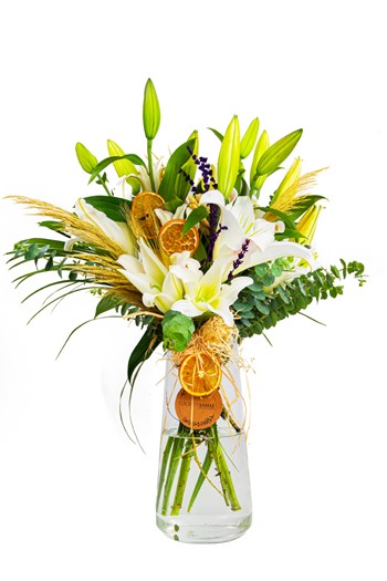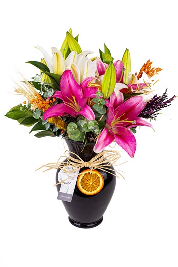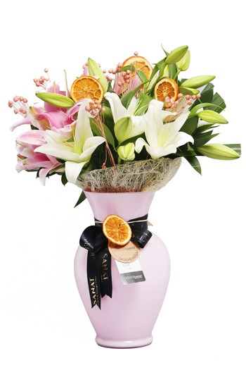 Tek renk ya da farklı renklerden oluşan bir lilyum vazosu hem görsel olarak hem de ortam havasını ferahlatması açısından güzel olabilir.