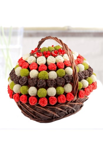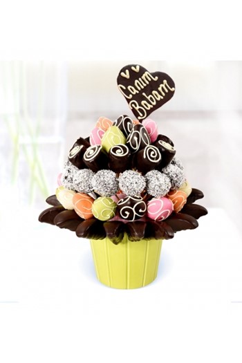 Çikolatalı meyve sepetinde genellikle çikolata kaplı çilekler yer alır. Fakat tüm meyvelerin çikolataya kaplı bir şekilde sunulması mümkündür. Ayrıca bu tarz sepetler truffle ve kurabiye gibi herkesin sevebileceği yiyeceklerle zenginleştirilir. Özel olarak tasarlanan çikolatalı meyve sepeti üzerine yine çikolatalar ve krema kullanılarak çeşitli notlar yazılabilir. Örneğin anneler günü için “canım annem”, sevgililer günü için “seni seviyorum” ya da yeni bir işi kutlamak için “hayırlı olsun” gibi notlar eklenebilir.
