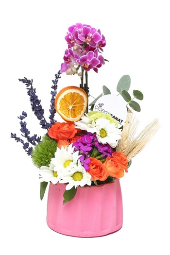 Eğer daha sıcak renklerden oluşan özür çiçeği isterseniz ithal mini orkide ve turuncu ya da pembe çardak çiçekleri ile hazırlanmış aranjmanlar tercih etmeniz mümkündür. Ayrıca lisyantus çiçeği de farklı aranjmanlar içerisinde değerlendirilebilir. Bu tarz aranjmanlar genellikle kuru portakal ve kuru çiçekler ile tamamlanır. Dilerseniz ağaçtan saksı içerisine yerleştirilmiş mini mor orchid, pembe gül, çardak güller ve kuru çiçeklerden oluşan bir tasarımı da özür çiçeği olarak tercih edebilirsiniz. Burada önemli olan hem çiçeklerin hem saksı ya da vazo tasarımının hem de yapılan aranjmanın duygularınızı yansıtacak kadar şık ve güzel görünüyor olmasıdır.